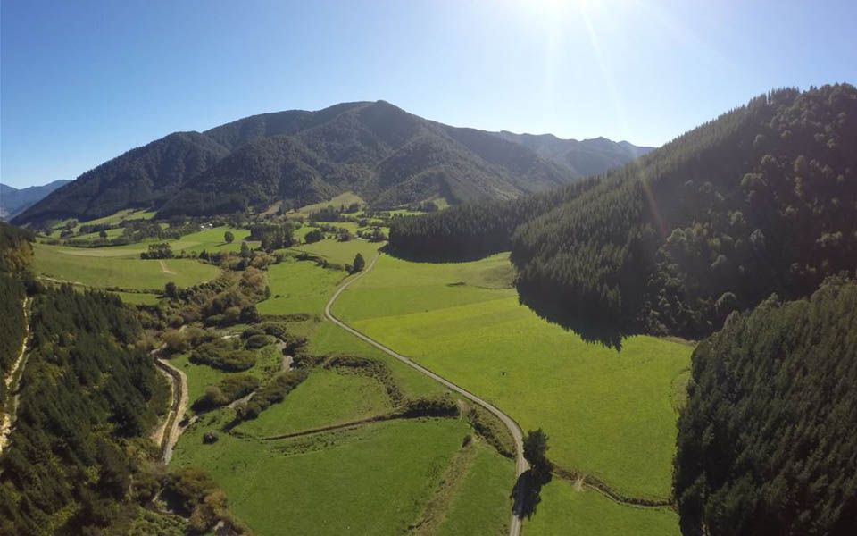 The Rai River runs through the valley and reaches the Pelorus River at Pelorus Bridge 8 km to the south.